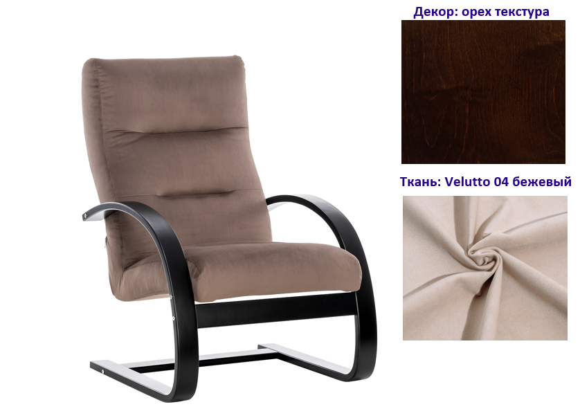 • Кресло для отдыха Неаполь Модель 4 (Орех текстура/Ткань бежевый Velutto 04)